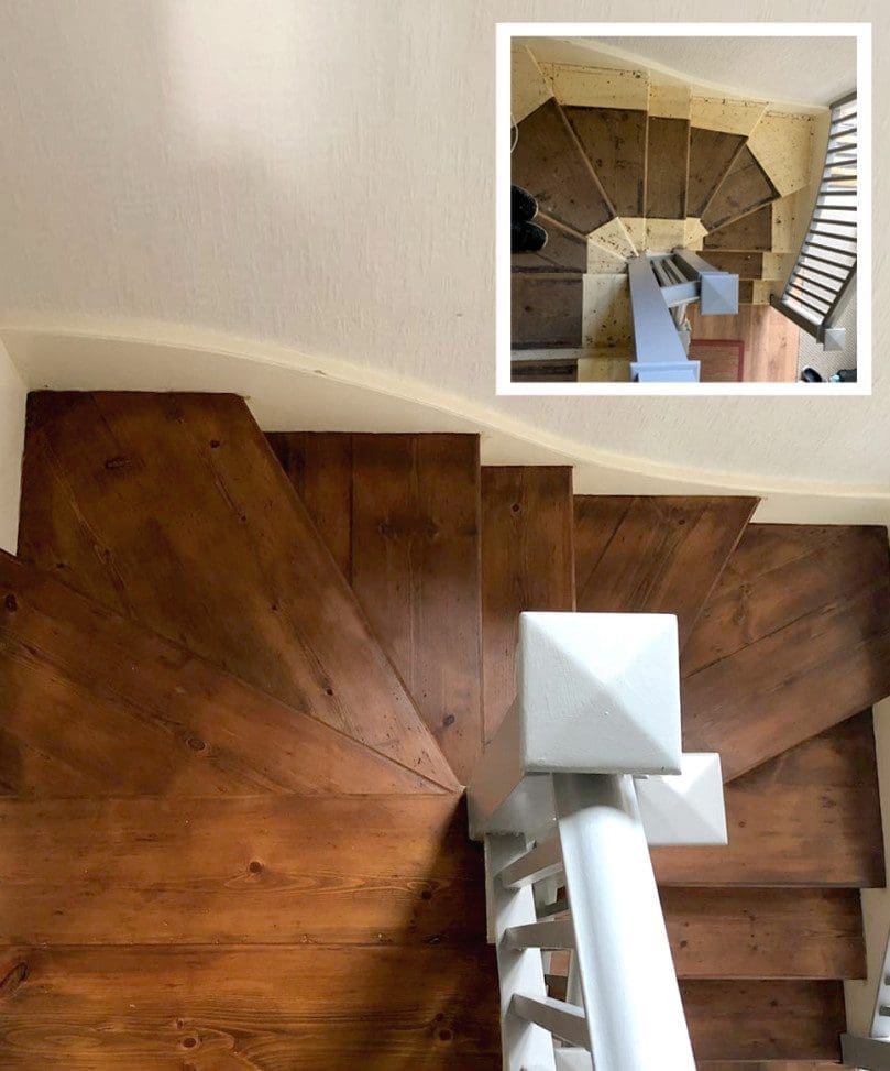 After lifting the carpets of this Victorian house in Lewes, we revealed the original floorboards for the first time in 30 years. We cleaned out all the dirt from the gaps and installed reclaimed pine slivers to avoid drafts and creepy crawlies. We then applied three coats of @loba_on_top_uk matte lacquer to finish the boards with a lovely golden look.